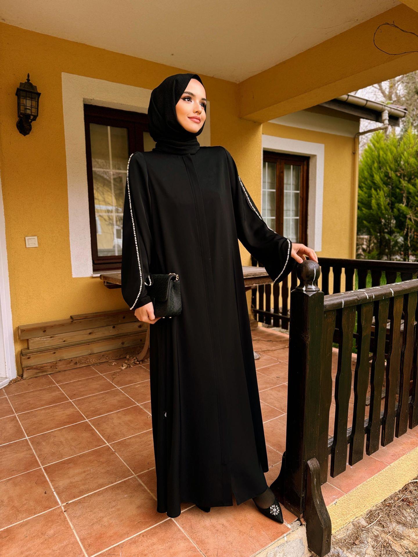 Ebrar Ferace model ürünümüzün kumaşı dubai ipeğidir. Ebrar Ferace’mizin kollarında cam inci ve sawaroski taş detayları mevcuttur Ebrar Ferace S L M XL XXL bedenleri ile 48 bedene kadar beden seçeneği mevcuttur. Önden patlı ve fermuarlıdır. Boy 144 cm’dir.